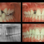 Fig. 7 Quarto caso clinico. I denti frontali in fase espulsiva, la loro estrazione, l’inserimento angolato degli impianti e la piegatura di parallelizzazione.