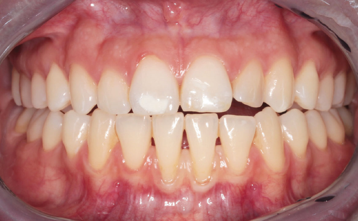 Fig. 3 Presenza di recessioni gengivale di grado I di Miller della superficie vestibolare di 4.1 e 3.1.