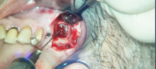Fig. 5 Si utilizza una siringa per il drenaggio della patologia sinusale.